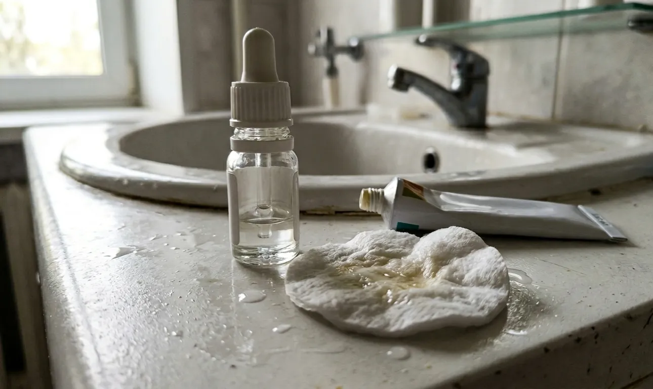 Ten eerste kun je de oogleden voorzichtig afvegen met een droog watten schijfje om zalfresten van het huidoppervlak te verwijderen.